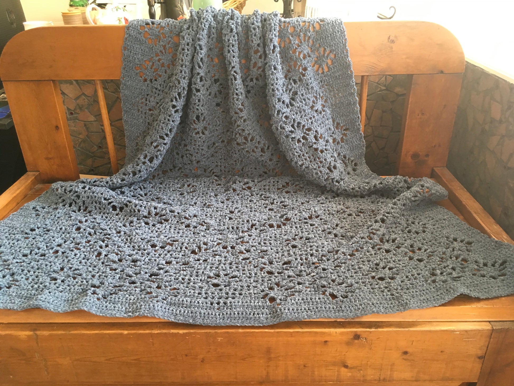 Light and warm, this elegant throw blanket is made from 100% wool chenille. Hand crocheted by The ADHD Artist. Dry clean only.